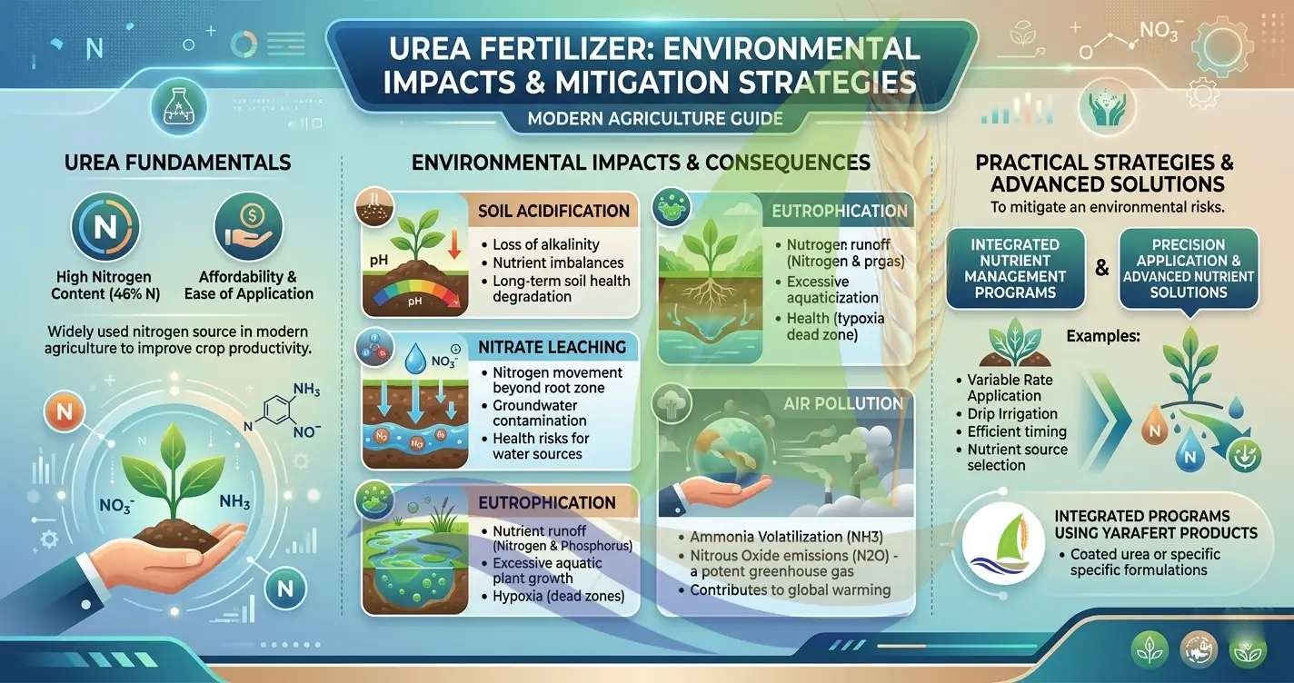 This comprehensive guide reviews the environmental effects of urea fertilizer, including soil acidification, nitrate leaching, eutrophication, and air pollution, while highlighting practical strategies and advanced nutrient solutions—such as integrated programs using Yarafert products—to mitigate environmental risks.